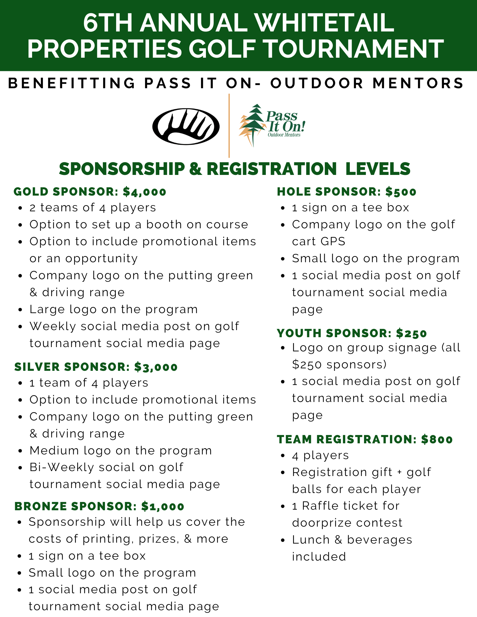 Please email Brittany French at bfrench@outdoormentors.org to learn more about our sponsorship opportunities and secure your spot! This tournament will sell out!