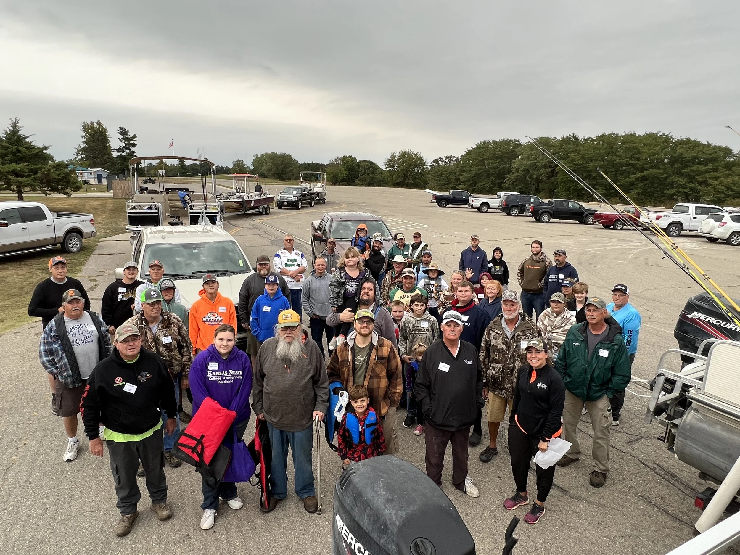 Tim Schaller and his family worked hard to plan the special details of this event that made it so special. We had 25 youth and their guardians attend this event! They all had the luxury of going out to fish for bluecat at Milford Lake. We were very lucky and had 8 individuals with boats and pontoons commit to mentoring these youngsters for Matthew’s memorial. A close friend of ours made the comment that “if the Tim Schaller fleet of Milford fishermen are involved, it’s going to be a great time!” and that source was not wrong! Upon arrival, Tim’s family greeted mentors and youth with hot doughnuts! We made sure that everyone had a name tag, lifejacket, and knew what boat they would be fishing out of for the day. We hit the water after that!